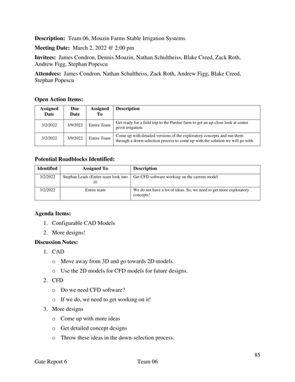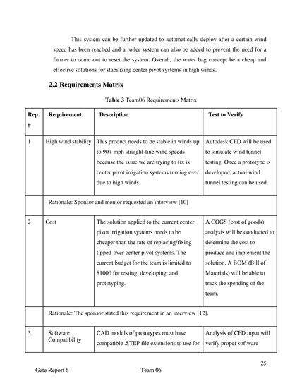 For the Spring semester of the 2021-2022 school year and the Fall semester of the 2022- 2023 school year, 3 other students and myself were assigned to work with the client Mouzin Brother’s Farms and engineer a possible solution that will stabilize center-pivot irrigation systems used in their fields. Center-pivot irrigation systems are pieces of farming equipment used throughout the United States and around the world for dousing large areas of farming land with water. The challenge this group was assigned to attempt to overcome is the issue of these irrigation systems’ propensity to catch strong, perpendicular gusts of wind during large storms. As a result, these systems can be twisted and blown over causing severe damage to the center pivots as well as the crops. The developed solution to improving the center pivot irrigation system’s resilience against storms and high-speed winds helps save farmers money from unanticipated repairs or replacements and lost or damaged crops. This stability solution also helps farmers with insurance premiums.